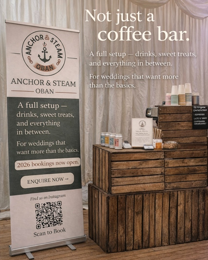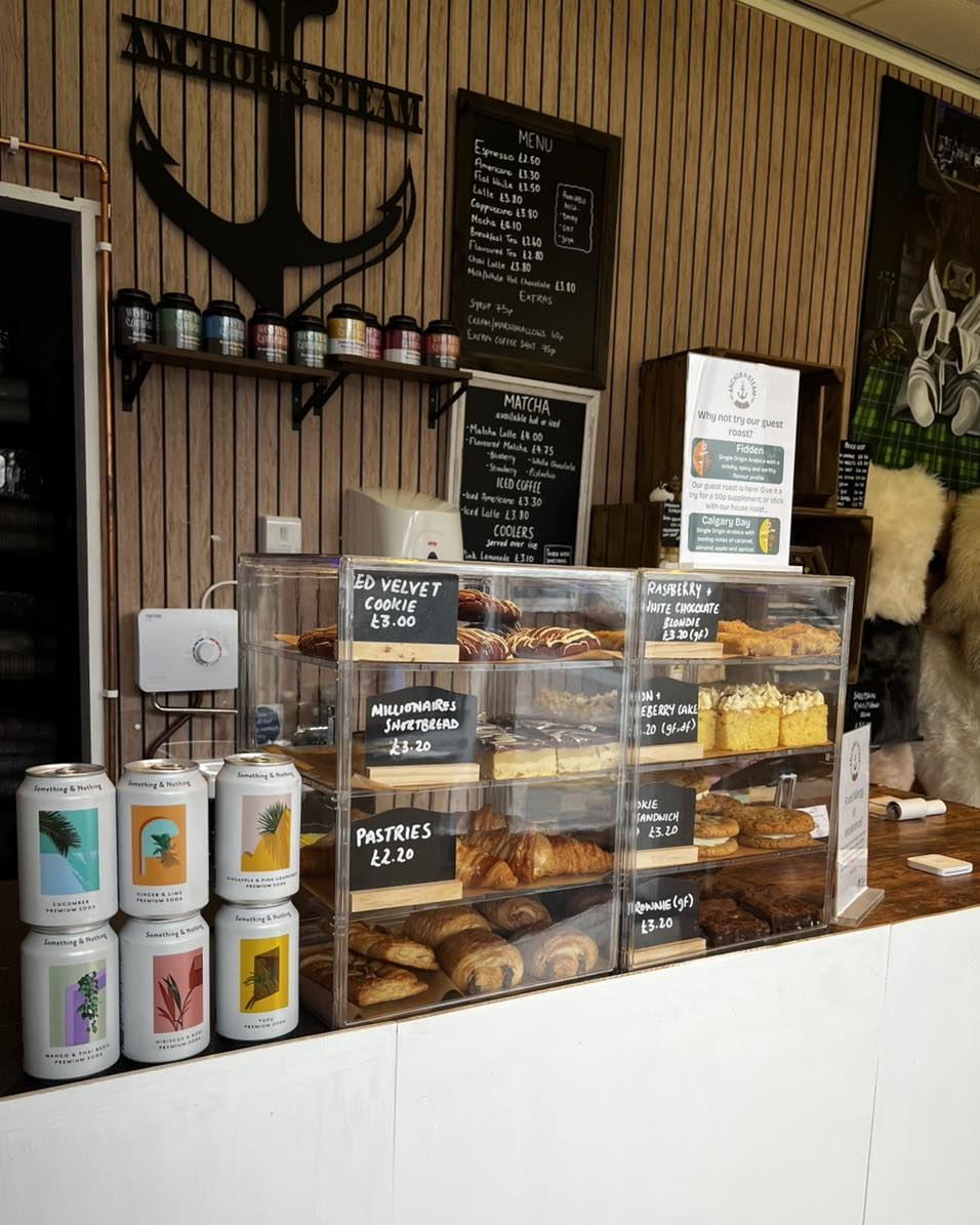 Anchor & Steam is a cosy lifestyle store and coffee shop in Oban, offering takeaway coffee, sweet treats and thoughtful local gifts.